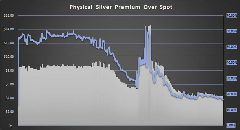 UPDATE 12/18/20 @ 9:35 PM EST: Physical silver premium has now dropped below 17%. This is getting close to the standard premium that existed before the Corona Virus Pandemic Scare of early 2020. I purchased a roll of Silver Eagles back in August of 2019 at a 13.47% premium.